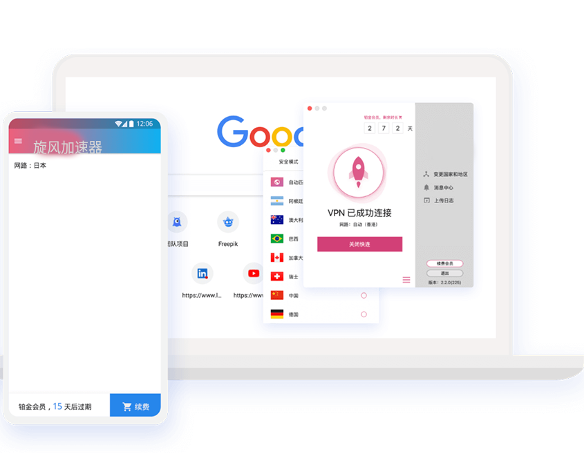 高速稳定的网络加速工具,流量加密,协助您匿名隐身 多平台兼容,随时一键连接 遍布各地的优质加速节点.